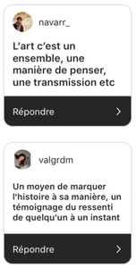 For this big article I made the choice to talk about art through social networks and to respond to our topic using my social networks. I think it's a good way to analyze all this. In story I posted a lot of questions :