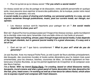 We all know that social media is everywhere and also in the art world. For this last part of the article I will present you an Interview of a French florist, Vincent Le Marre. His at the start of his company and he work with dried flower, he made crow, bouquet and even home’s decoration. Florist isn’t his only activities. He works in free-lance with other florist and their fresh blossoms to create compositions for fashion show as an example. To make my interview I gave him some questions and he replied, also in writing. With the covid-19 and with all the work we have make an interview face to face or videoconference was impossible. (I join the interview, which is in French, and through my article I’m going to explain his though. I will also translate the interview for more clarity. After the article will appear the interview).